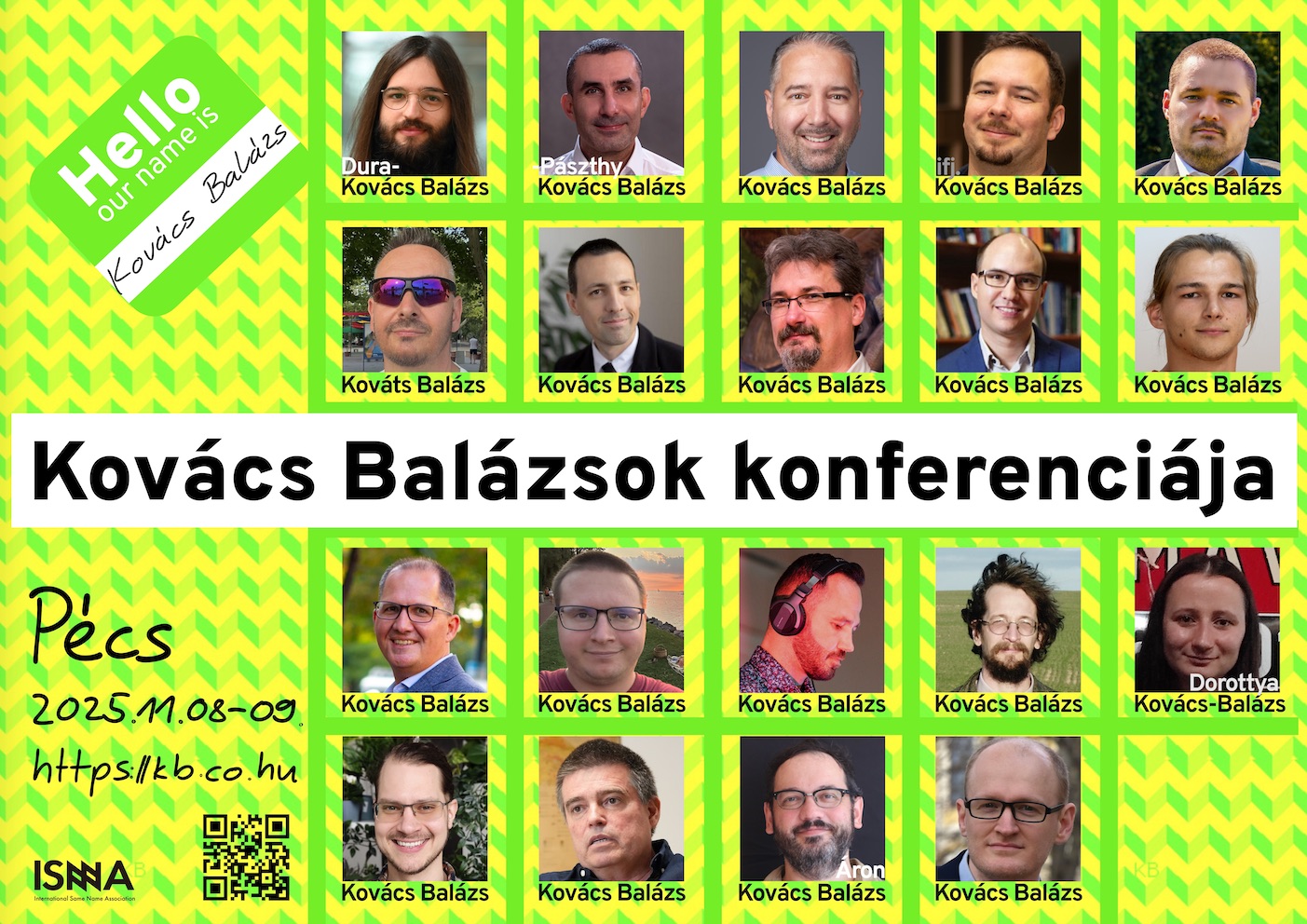 A Kovács Balázs nem egy ritka név: közel négyezren lehetünk. Sokfelé szóródtunk tudomány- és alkotói területeken, izgalmas lenne megtudni, ki mivel foglalkozik épp! Ennek céljából egy interdiszciplináris konferenciát szerveztünk, aminek témáit egyedül az előadók neve kapcsolja össze.